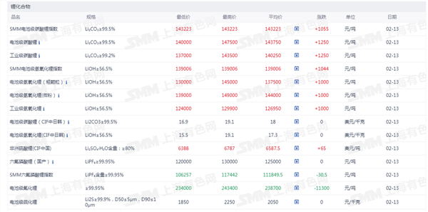 锂化合物现货价格