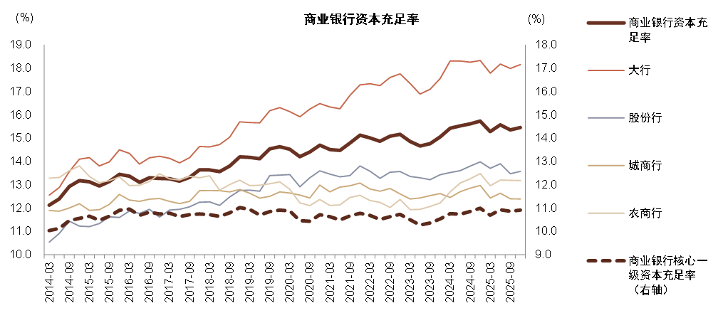 图表:2025年商业银行核心一级资本充足率同比-8bp至10.9%