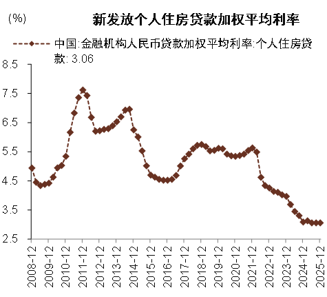 图表:2025年12月个人住房贷款新发放利率较9月持平于3.06%