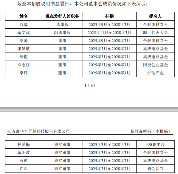 招股书所附简历显示,聂崴,男,1981年3月出生,中国国籍,无境外永久居留权,经济学硕士学位,经济师、政工师。2003年7月参加工作,2003年6月加入中国共产党。2008年7月至2020年12月,历任中国建材股份有限公司投资发展部总经理助理、副总经理;2021年至2025年3月,历任西南水泥党委委员、纪委书记、党委副书记、董事;2025年4月至今,任中建材联合投资有限公司副总经理。2025年9月至今,任鑫华半导体董事长。