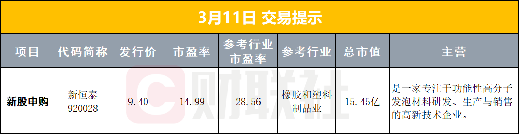 5、通威股份公告,拟筹划购买丽豪清能100%股权,股票3月11日复牌。
