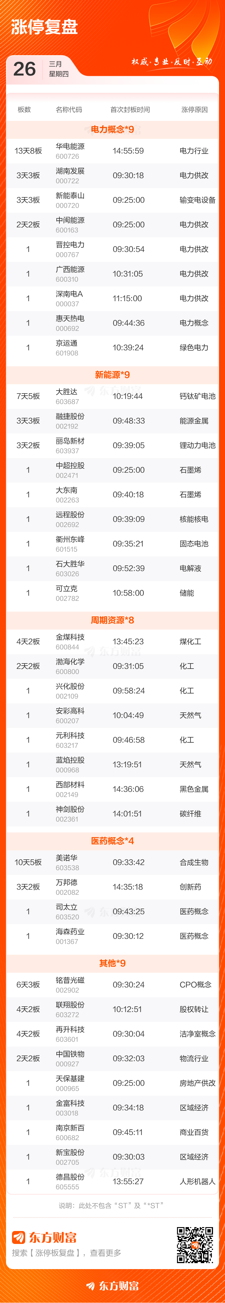 涨停个股数量方面,今日共计51股涨停,另有28只个股盘中一度触及涨停,封板率64.56%。 500)this.width=500 align=center hspace=10 vspace=10 alt=> 500)this.width=500 align=center hspace=10 vspace=10 alt=> 免责声明:本文基于AI生产,仅供参考,不构成任何投资建议,据此操作风险自担。东方财富发布此内容旨在传播更多信息,与本平台立场无关。东方财富力求但不保证数据的完全准确,如有错漏请以中国证监会指定上市公司信息披露媒体为准,东方财富不对因该资料全部或部分内容而引致的盈亏承担任何责任。用户个人对服务的使用承担风险,东方财富对此不作任何类型的担保。