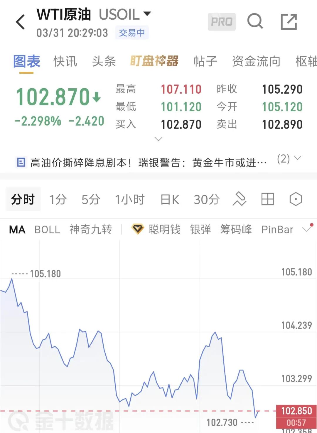 油价加速下行,WTI原油跌超2%。