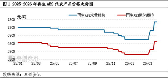 【导语】2026年一季度再生ABS市场前低后高,1-2月气氛弱势僵持,3月受国际局势影响骤然上涨。再生厂家现货库存压力不大,支撑报盘随行走高;而下游厂家补仓成本压力剧增,但终端需求表现一般,因此成交气氛显谨慎。预计二季度市场成高位震荡局面,实单交投延续刚需。
