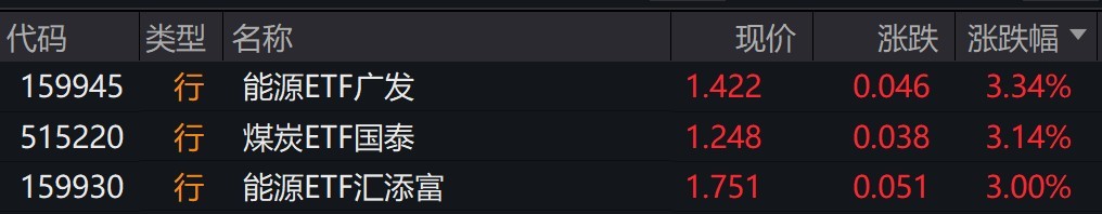 受盘面影响,能源、煤炭相关ETF涨超3%。