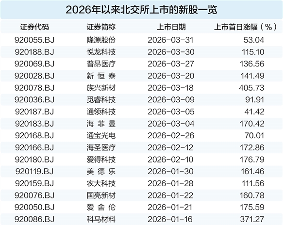2026年第一季度,北交所总共有16只新股上市,成为IPO主力战场。来自Wind的数据显示,这16家新股上市首日平均涨幅达160%,延续高景气。