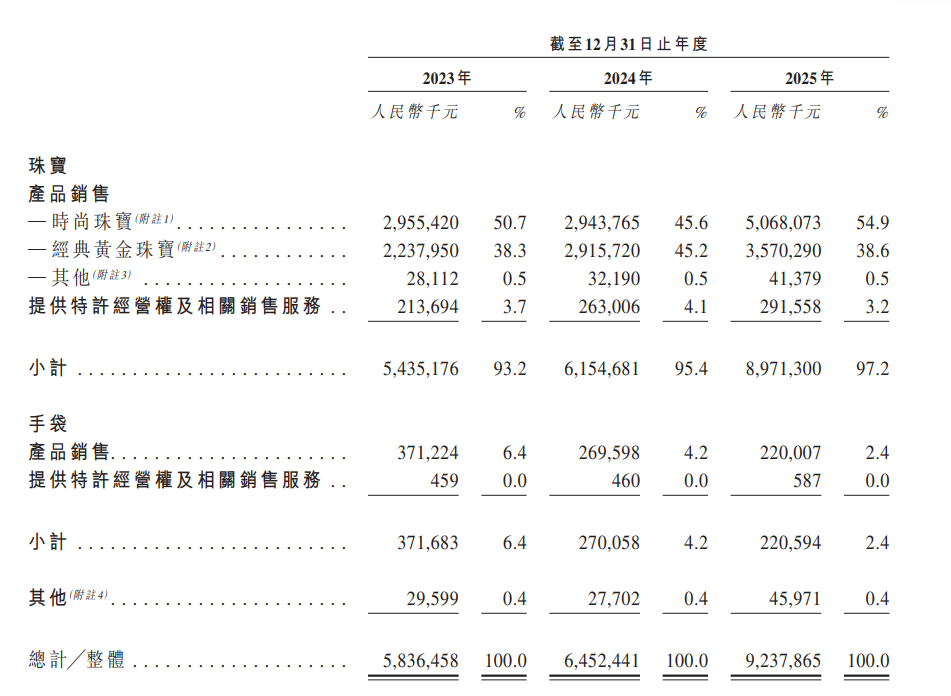 公司称,珠宝首饰销售收益是主要收入来源,分别占总收益的89.5%、91.3%及94.0%。