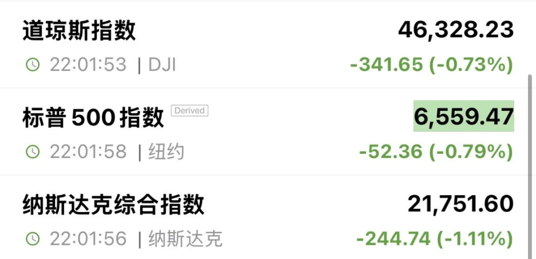 截至发稿,纳指跌1.11%,标普500指数跌0.79%,道指跌0.73%。